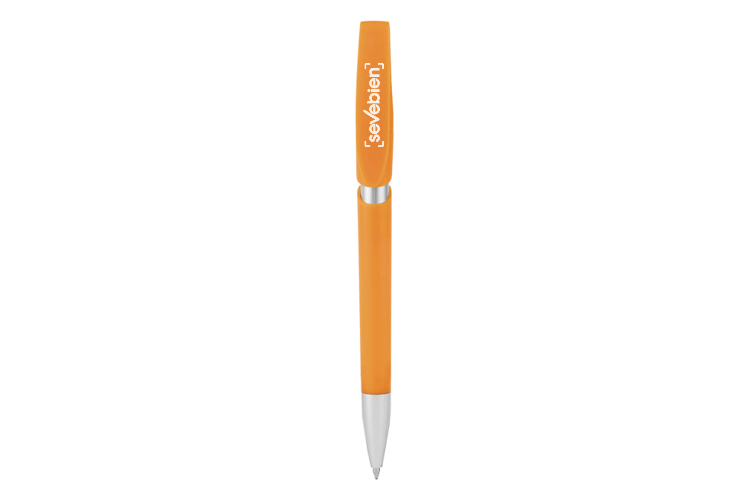 Plástico. Apertura retráctil con pulsador. Clip plástico, color plata en punta y cuerpo. Tinta negra.