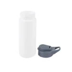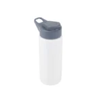 Botella reutilizable de PET con tapa de Polipropileno, cuenta con un agarre en la tapa para su transporte. Producto libre de BPA. No es apta para bebidas calientes, lavavajillas ni microondas. Capacidad: 600ml.