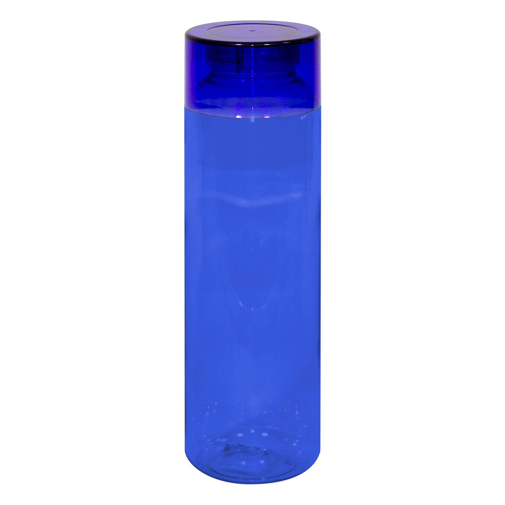 Botella de plástico de colores translúcidos con tapa a rosca plástica.