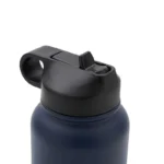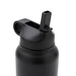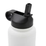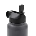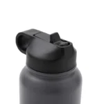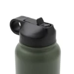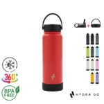 Botella isotérmica de 1000 ml, con doble pared de acero inoxidable 18/8, pintura en polvo y base de silicona antideslizante, mantiene tus bebidas frías durante 12 horas y calientes durante 8 horas. Cuenta con dos tapas negras a rosca, para que utilices la que te resulte más cómoda: la primera, con boquilla y anillo para facilitar el agarre, y la segunda con manija para transportarla. Incluye 2 sorbetes y cepillo limpiador. Viene en 12 colores diferentes. Ideal para tus actividades deportivas y al aire libre. Con impacto positivo en el medio ambiente, esta botella reutilizable te ayuda a reducir el consumo de plástico de un solo uso. Dimensiones: 28 x 9 cm (Altura x Diámetro). Los productos tienen certificación de calidad bajo pedido. Hydra Go.
