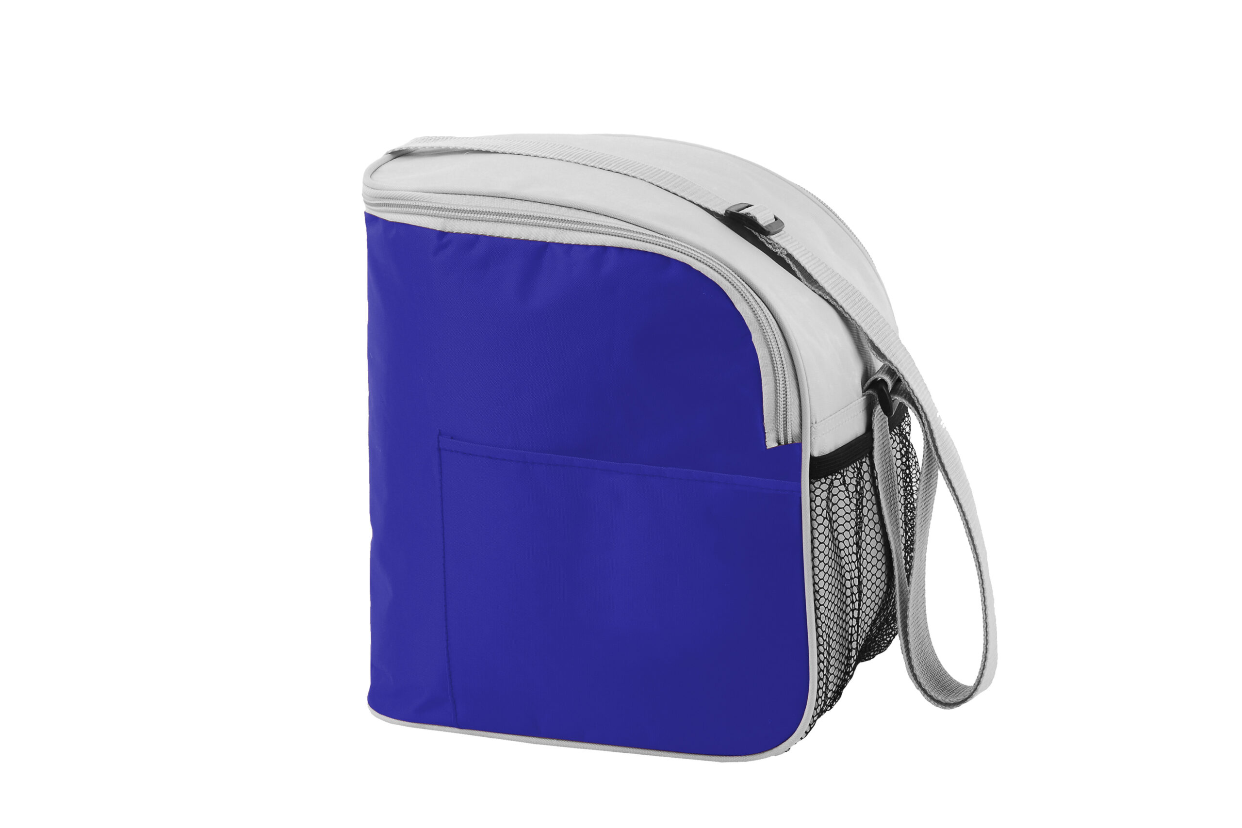 23 x 16 x 26 cm. Polyester 420D. Conservadora con cierre, 2 bolsillos exteriores. Interior con foil de aluminio. Correa regulable.