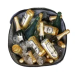 Interior de PEVA con soldadura hermética y estanca para evitar el derrame de líquido. Cuenta con manijas laterales y tapón inferior de desagote. Patas con apoyo antideslizante.