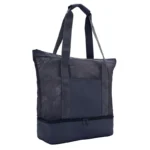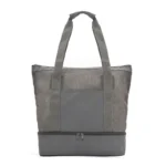 Bolso térmico tipo tote con doble compartimiento. Confeccionado en poliéster reciclado RPEAT 300D y 150D, malla RPEAT, espuma PE de 3 mm y revestimiento interior en PEVA 13C. Cuenta con compartimiento superior de malla, una base aislante térmica y asas largas reforzadas. Ideal para mantener alimentos y bebidas frescas durante salidas al parque, la playa o paseos.