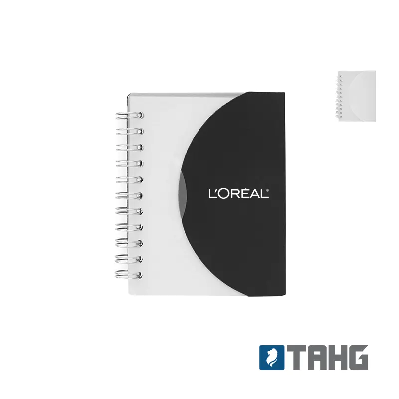 Cuaderno anillado con tapa de PP y 60 hojas rayadas. Medidas 10,8 cm x 7,8 cm
