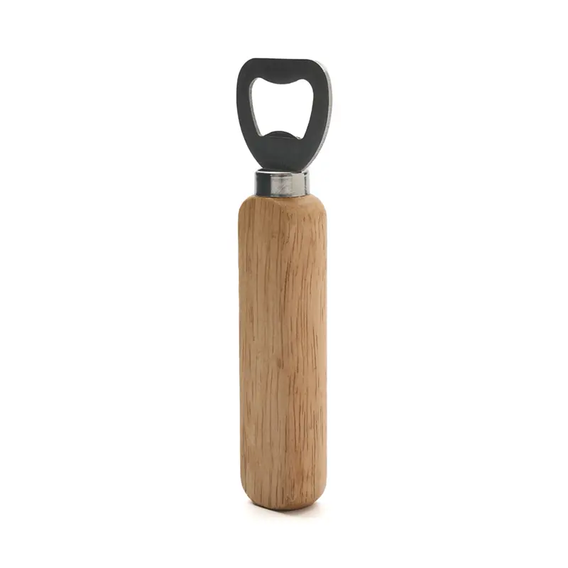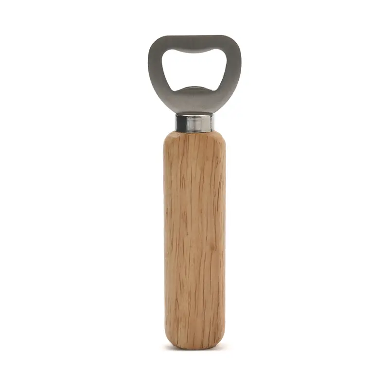 Destapador de botellas fabricado en acero con mango de madera de caucho, combina un diseño clásico con materiales resistentes y duraderos.
