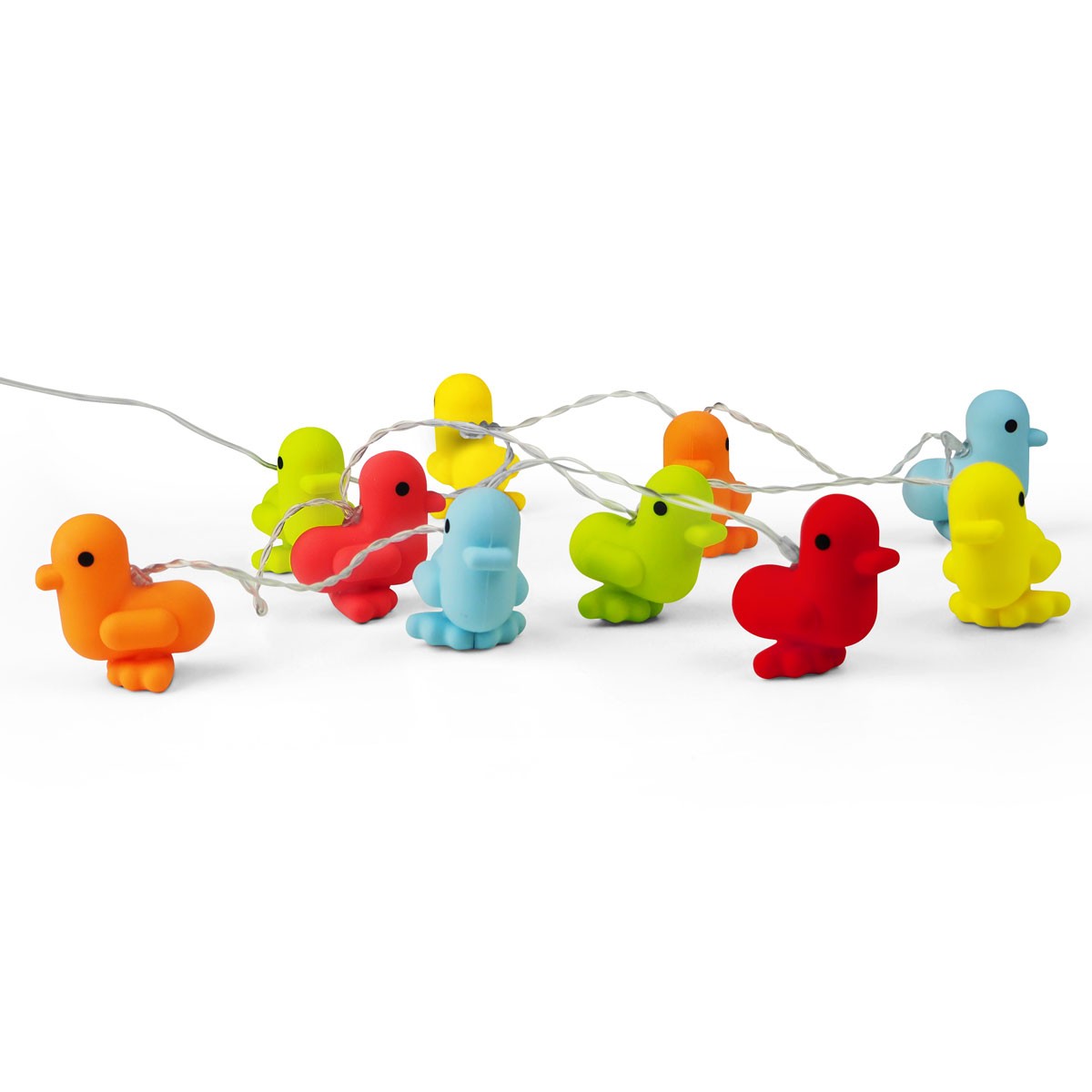 150 cm de largo. Silicona. Guirnalda luminosa. Luz LED. Funciona con 3 pilas AAA de 1.5V (no incluidas). Estos adorables y coloridos patitos iluminan de noche y alegran de día. Son simpáticos, tiernos y súper suaves. Ideales para decorar tus espacios. GATO es distribuidor exclusivo de este producto CANAR en Argentina. Presentación en caja de regalo.
