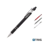 Lápiz de cuerpo sólido, realizado en ABS. Tinta de color azul. Apertura con con clip retractil. Posee touch para pantallas táctiles.
