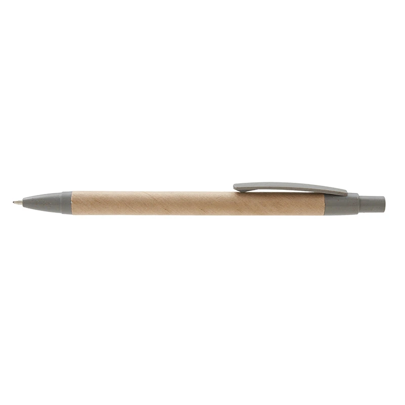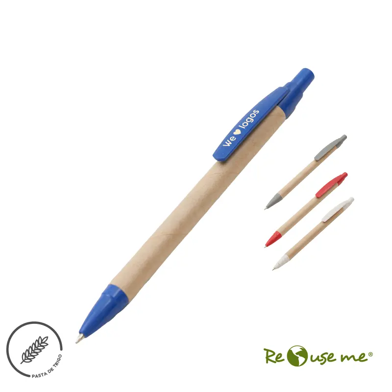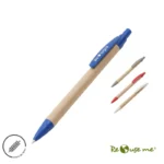 Lápiz realizado en celulosa y Wheat Straw, pasta de tallo de trigo, un material sustentable que reduce el consumo de plásticos vírgenes. Cuenta con clip de apertura retráctil. Tinta azul
