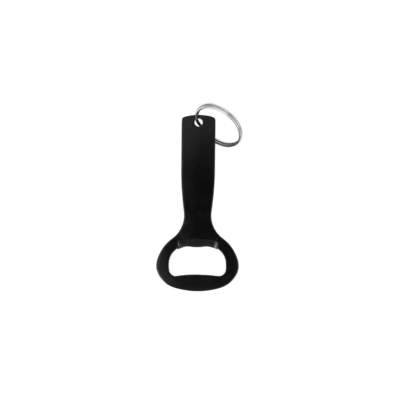 Llavero con destapador de aluminio. Medidas: 8,3 x 3,9 cm.
