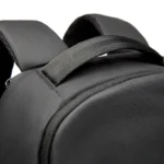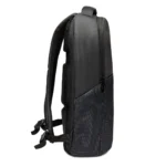 Cuenta con compartimiento principal para notebook y tablet, y correa para sujetar al carry on. En sus bolsillos, uno frontal oculto y otro en espaldar de seguridad, posee interior de red para artículos pequeños. Sujetador de carry on. Cuenta con apertura para espaldar vertical alternativa de 100°, para acceso directo a la notebook.