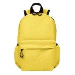 Mochila confeccionada en Polyester, con 2 bolsillos frontales con cierre y 2 bolsillos laterales elásticos porta botellas. Cuenta con correas regulables. Medidas: 42 cm alto | 27cm ancho | 12cm profundidad. Capacidad 13.5 lts.