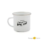 Mug tipo taza construido en carbon steel y esmaltado en color blanco. Con capacidad de 230 ml. Dimensiones: 7,7 x 7 cm. Pampa Spirit. Incluye Gift Box confeccionada en cartulina Kraft.