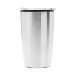 Mug térmico realizado en acero inoxidable en su exterior, y polipropileno de color negro en su interior, con tapa cristal clear y base antideslizante. Interior realizado en plástico. Medidas: 14.5 cm x Diámetro inferior 7,06 cm x Diámetro superior 9,2 cm. Capacidad: 400 ml.