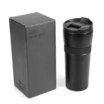 Mug térmico de doble pared en acero inoxidable. Cuenta con terminación exterior en color negro mate. Posee grip de silicona antideslizamiento y Cierre hermético y boca para tomar con traba a presión y silicona para evitar derrames. Interior de acero inoxidable. LOGO24: Producto disponible para el servicio de logueo en 24 horas respetando unidades mínimas de logueo y 200 unidades máximas. Consultar términos y condiciones del servicio. Capacidad: 500 ml. Medida: 20,3 x Diámetro 8,2 cm. Producto libre de BPA.