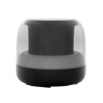 Sonido envolvente y luces vibrantes.Parlante Bluetooth estéreo con tarjeta TF y radio. ABS transparente con malla metálica en la parte superior. Led que cambia entre 7 colores y 7 modos de luz para elegir. Potencia 5W. Frecuencia 100HZ – 20K HZ. Versión Bluetooth: 5.3. Capacidad de la batería: 800 mAh. Cable de carga y conexión USB-C en color negro. Medidas: Ø 9,4 cm x 8,2 cm.