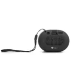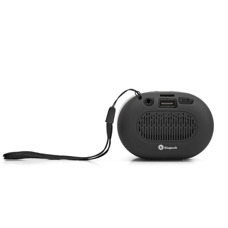 Parlante portátil con tecnología Bluetooth v5.0, micrófono manos libres y modo radio FM. Realizado en combinación de ABS y malla de acero. Incluye ranura para lectura de tarjetas de memoria micro SD, y posibilidad de conexión mediante cable auxiliar de 3,5mm | Batería de 300mAh | Potencia del parlante: 3w | Frecuencia:20Hz-20KHz | Alcance: 10 metros | Peso: 160g | Medidas 80 x 80 x 60mm | Kingtech.
