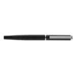 Lapiz roller de cuerpo metálico en acero con detalles en negro. Cuenta con tinta azul. Medidas: 13,8 x 1,3 cm.