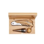 Set de vinos en caja de bamboo de dos elementos. Posee: Sacacorchos dos tiempos y tapón, realizado en acero inoxidable. Medidas de la caja: 13 x 8 x 3,2 cm. La Baule. LOGO24: Producto disponible para el servicio de logueo en 24 horas respetando unidades mínimas de logueo y 200 unidades máximas. Consultar términos y condiciones del servicio