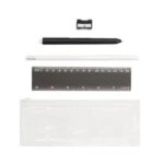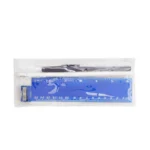 Cartuchera plástica transparente con cierre. Incluye: Lápiz, lapiz grafito y regla. Colores: negro, rojo y azul. Medidas: 8 x 20 x 1,2 cm.