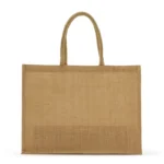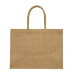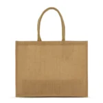Tote bag fabricada en yute laminado. Ideal para quienes buscan una bolsa resistente y espaciosa, perfecta para llevar compras, libros o cualquier objeto personal de forma cómoda y ecológica. Medidas: 35 x 46 x 19 cm. ReUseMe
